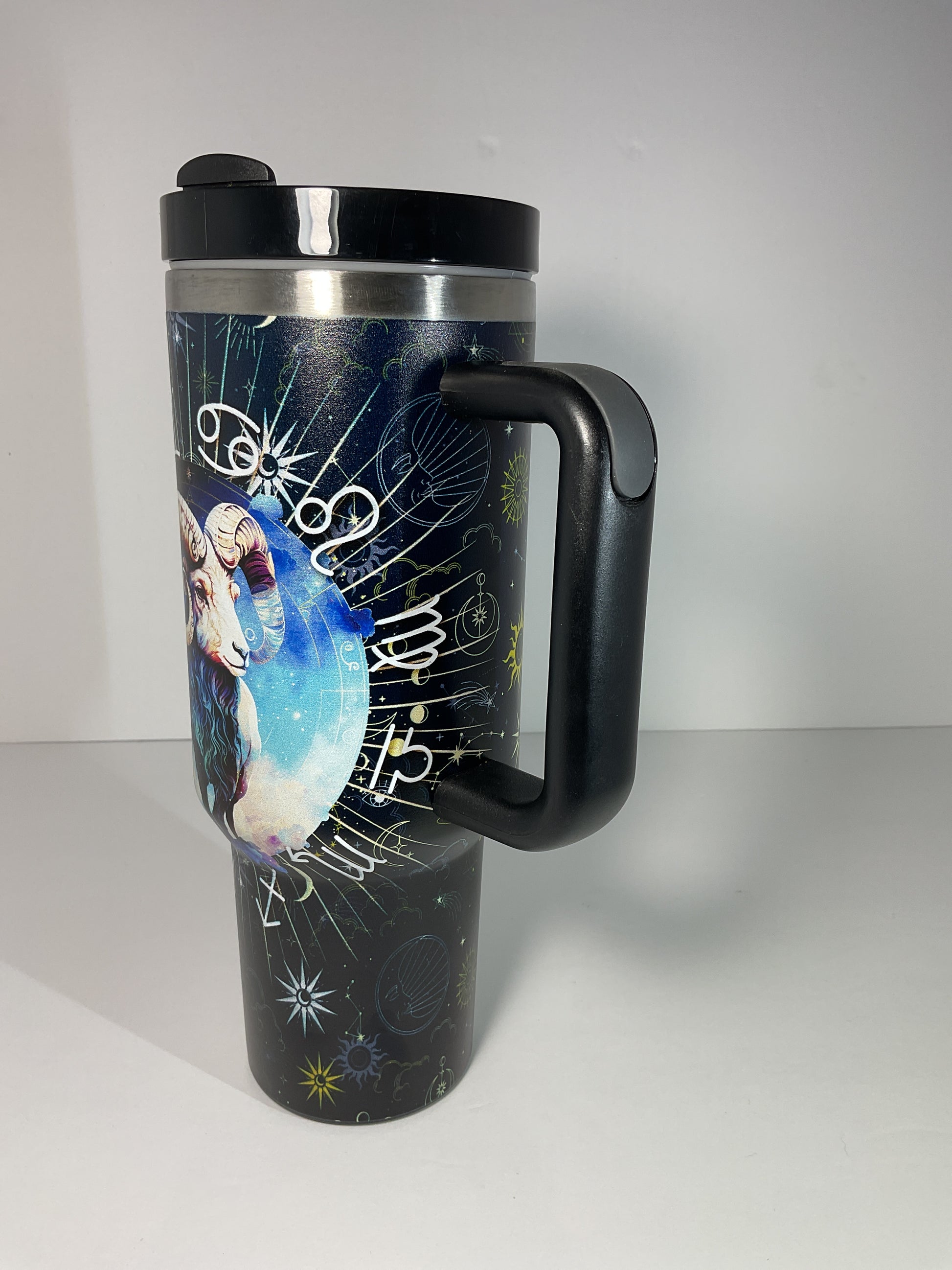 40-ounce zodiac sign tumbler. Cup holder friendly.