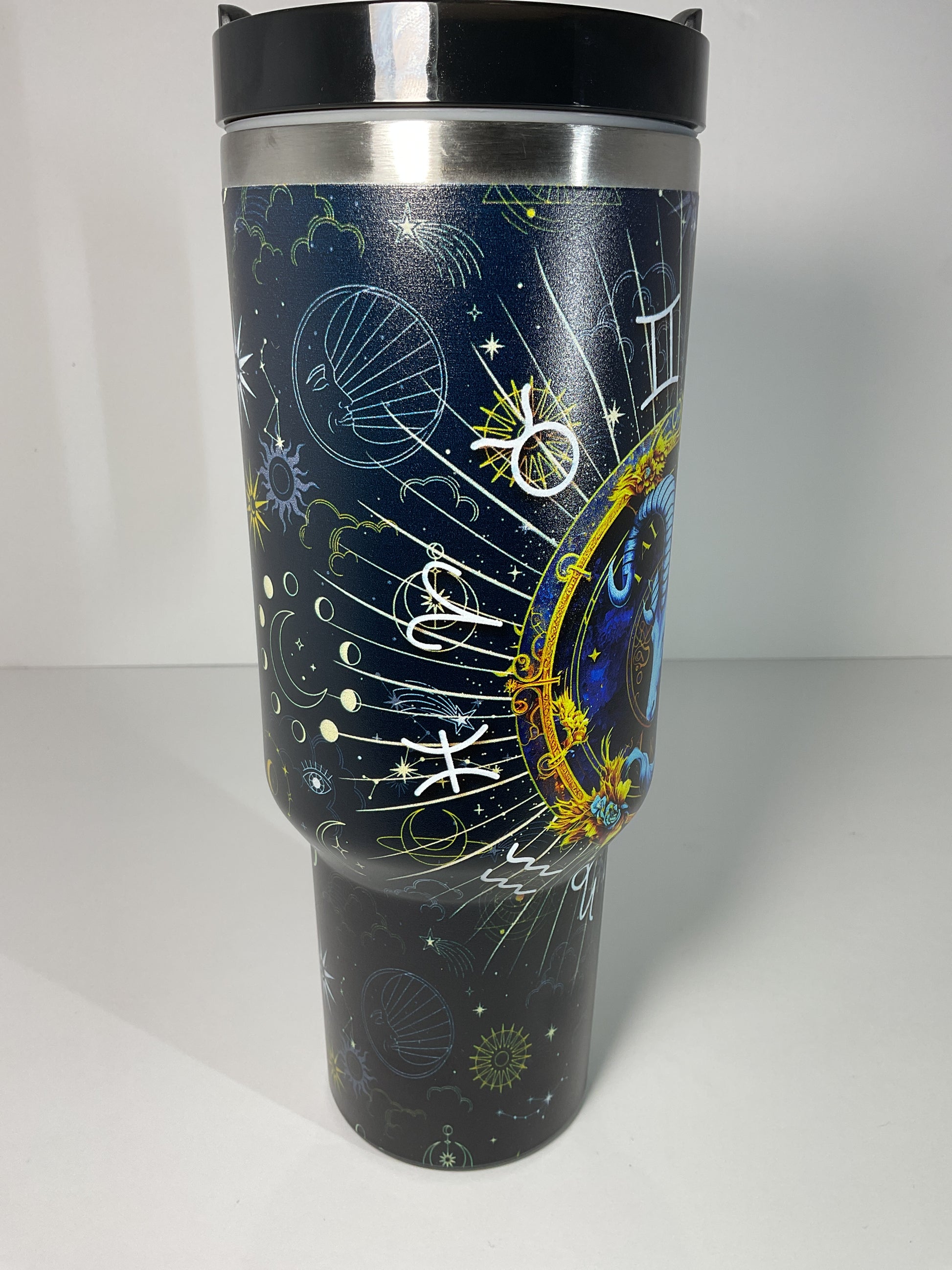 40-ounce zodiac sign tumbler. Cup holder friendly.
