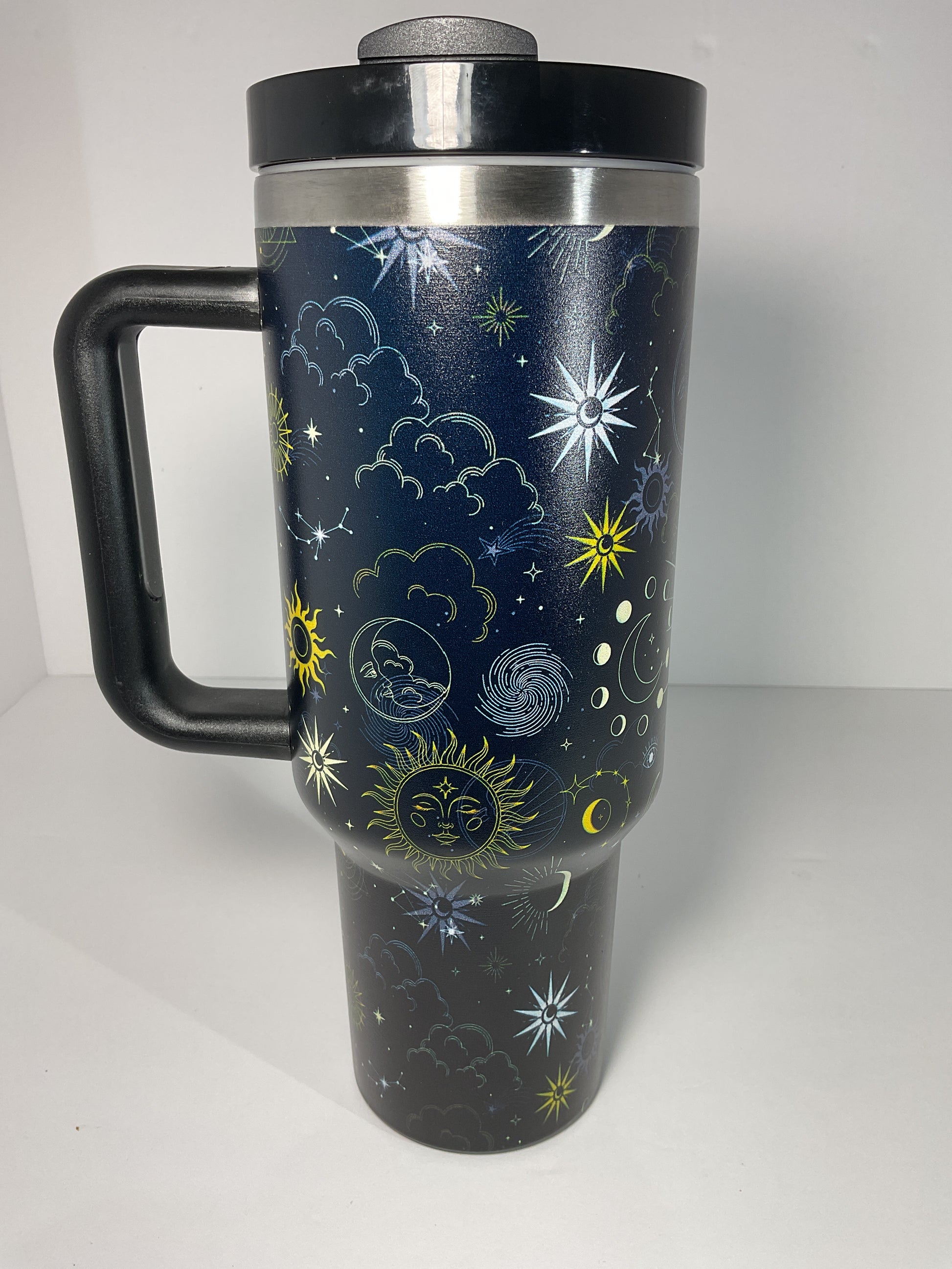 40-ounce zodiac sign tumbler. Cup holder friendly.