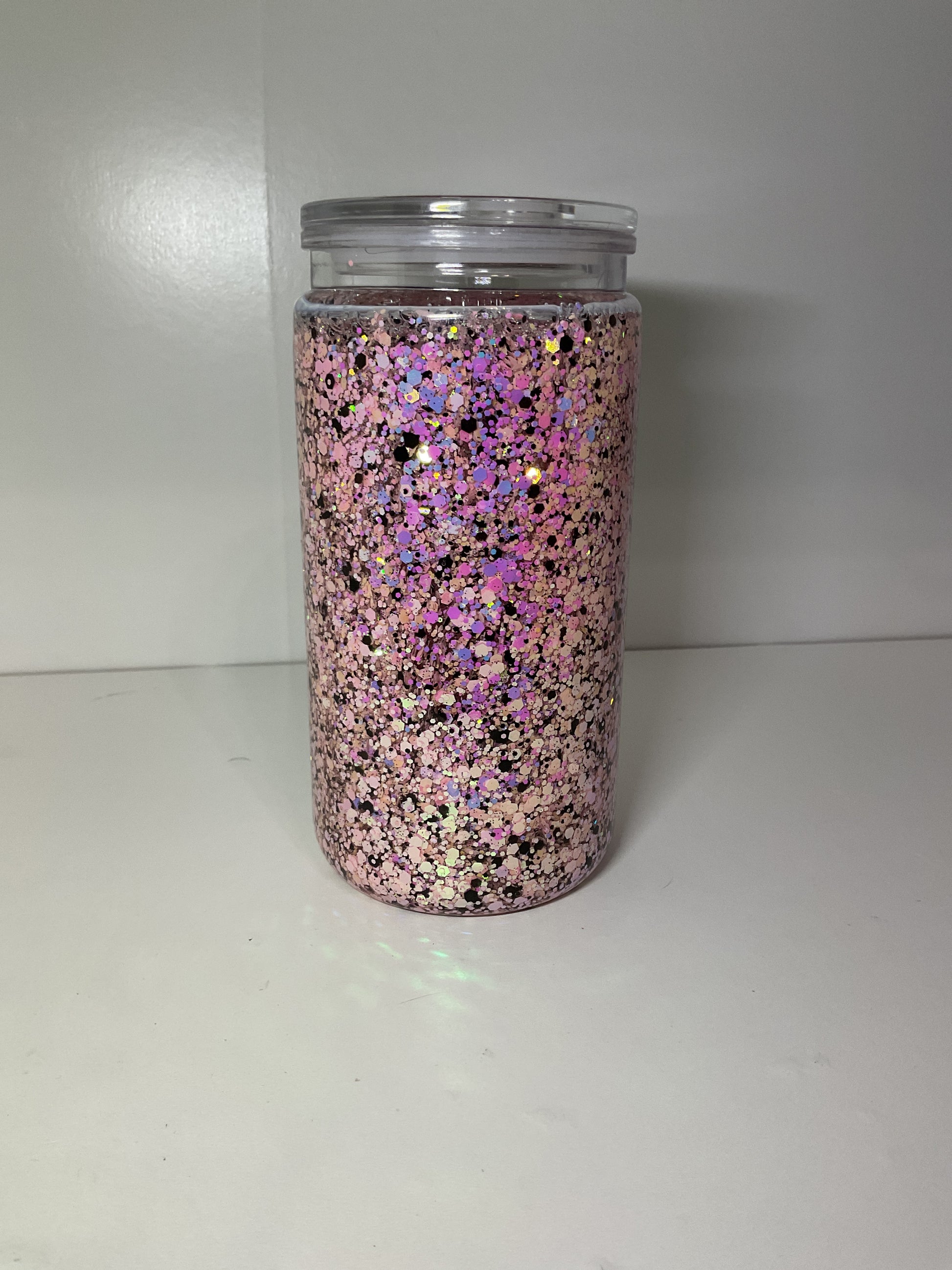 16oz plastic cup with lid and straw. this cup has a defect as seen in second photo. this cup is available for UV DTF wrap of your choice