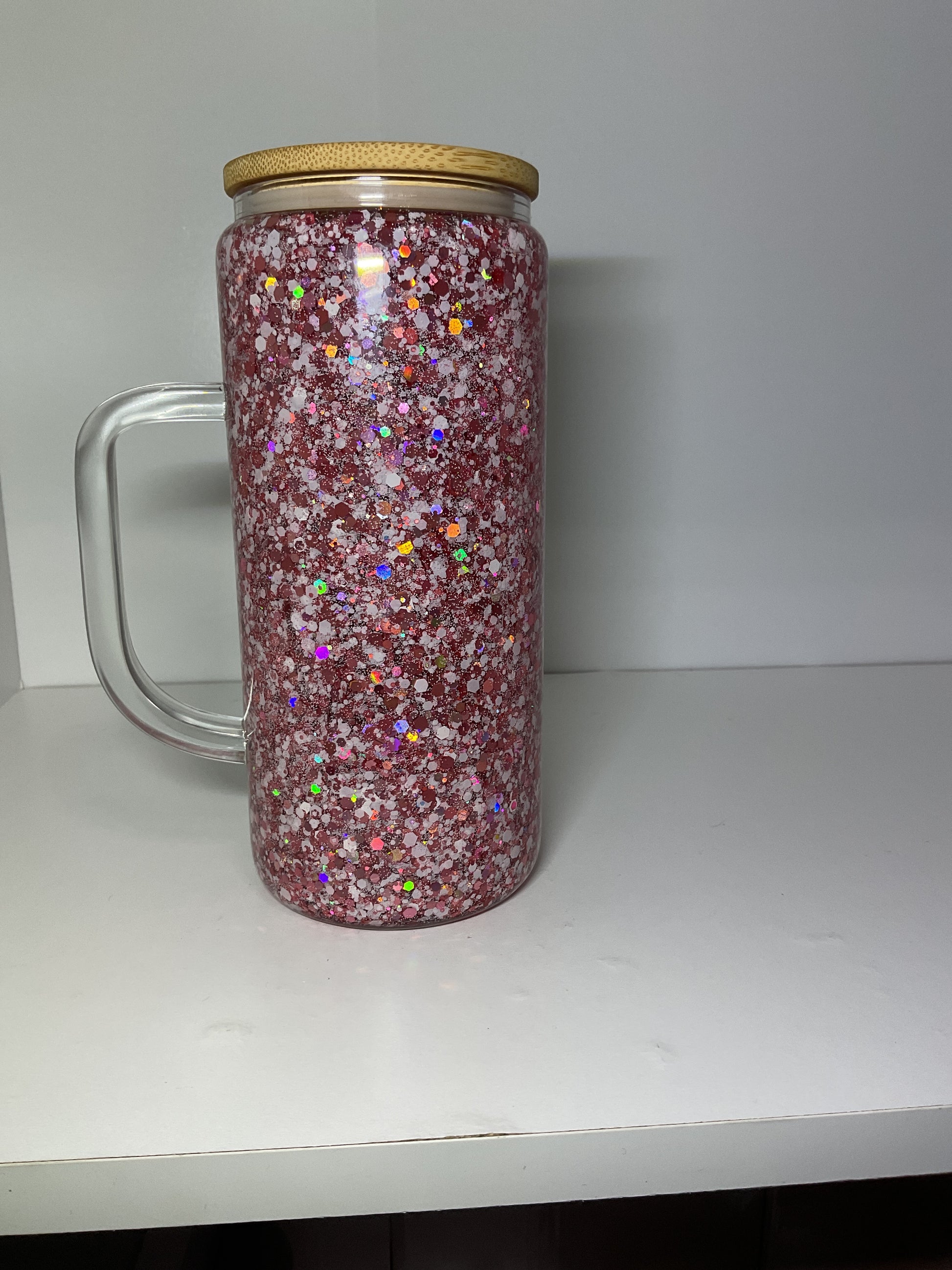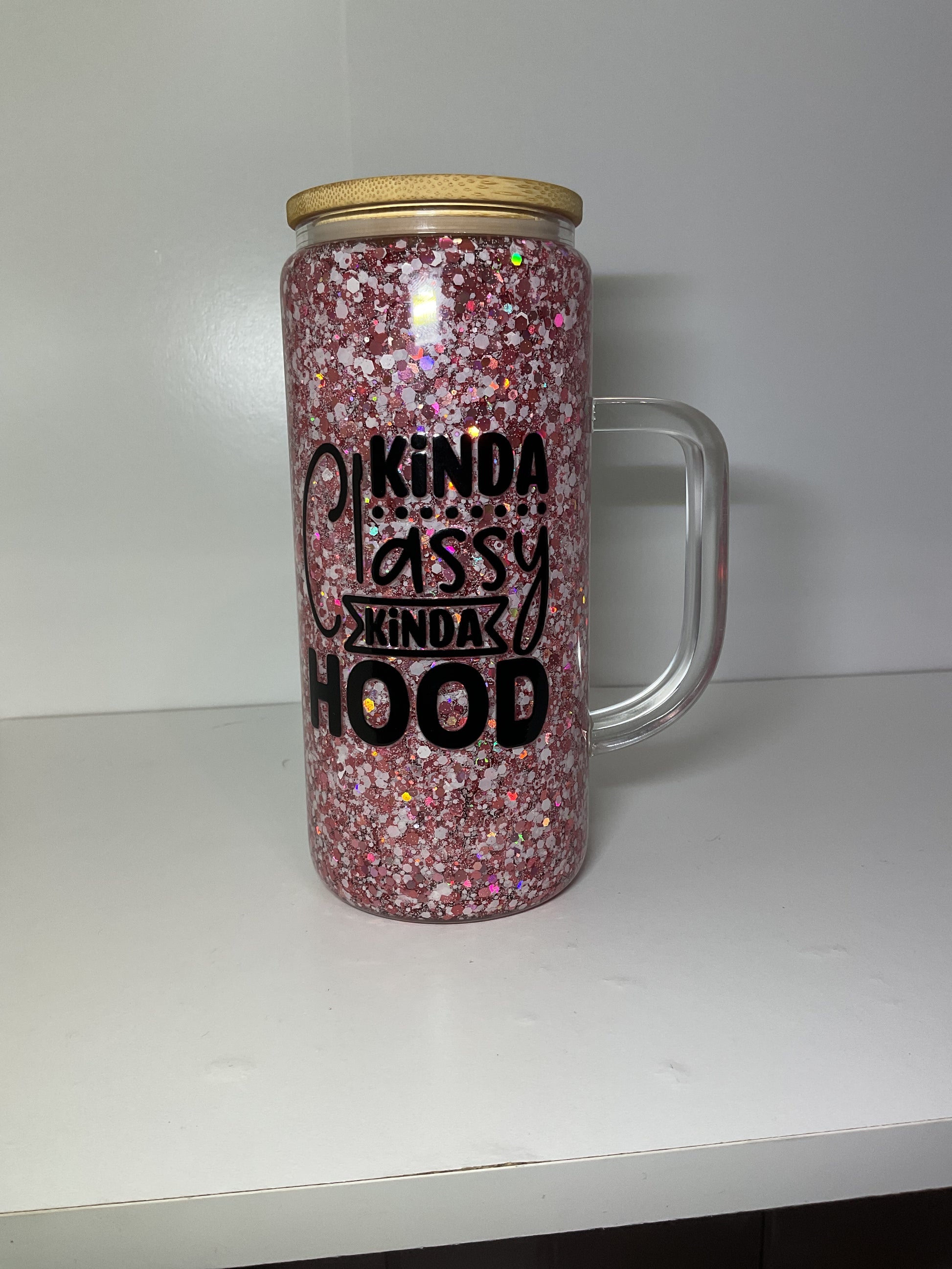 15oz glass cup with lid and straw.