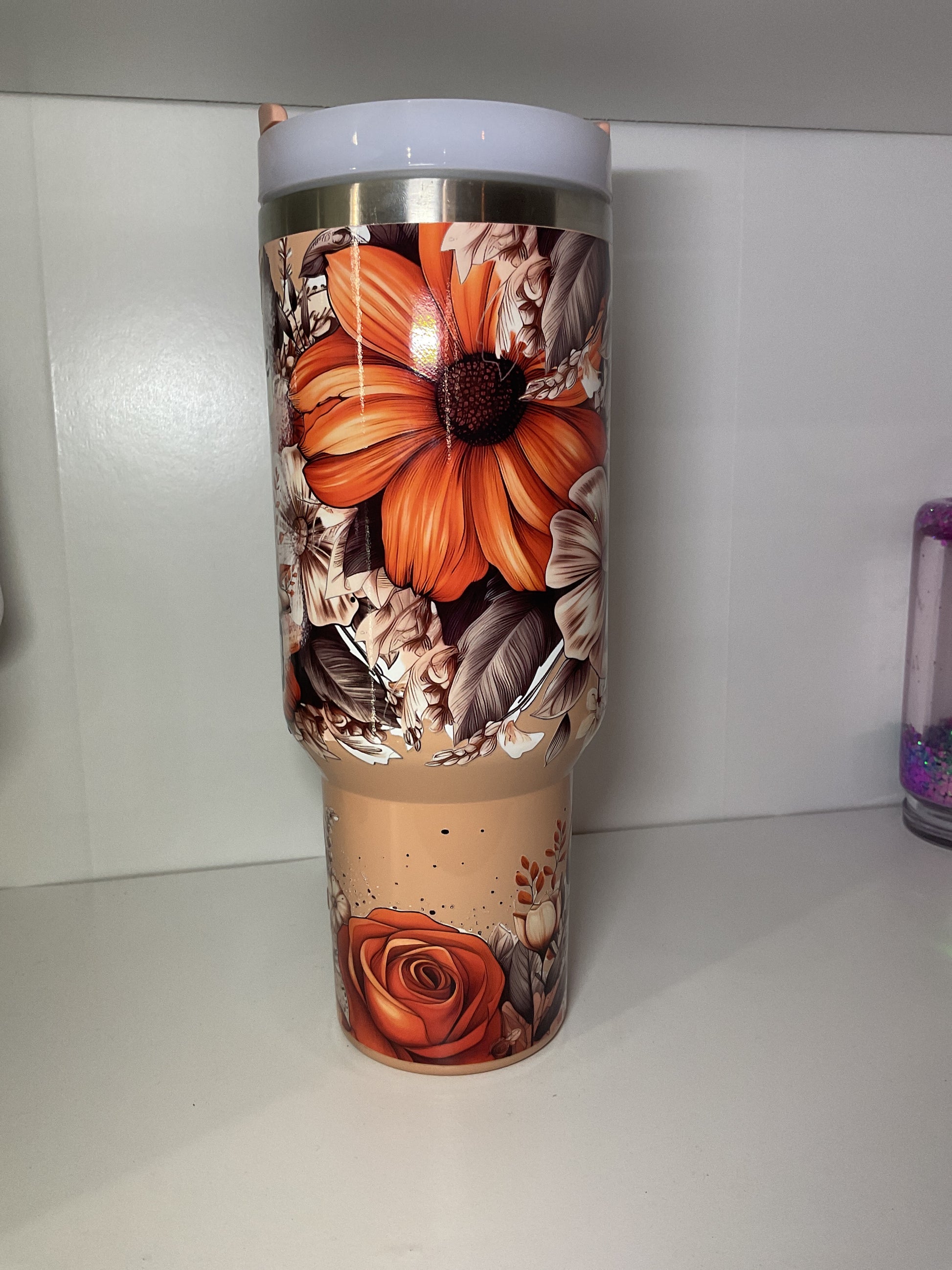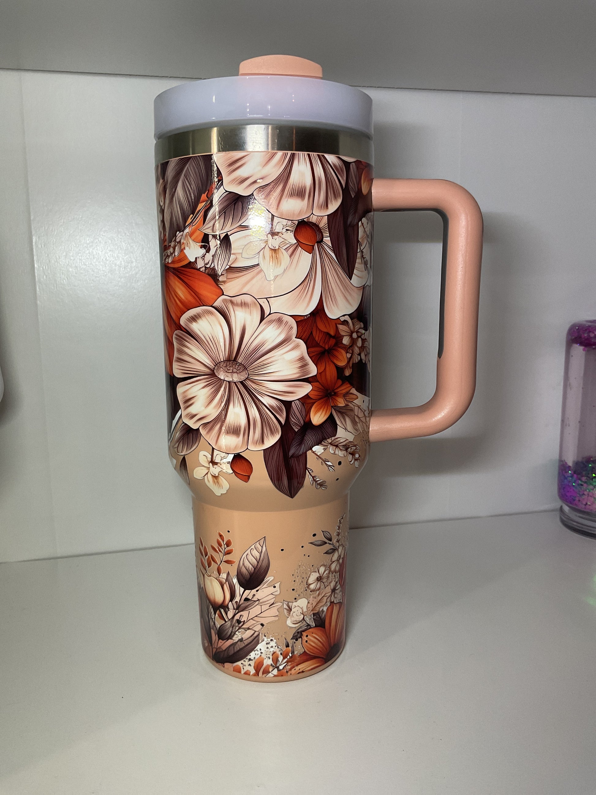 40oz tumbler features a generous 40oz capacity while maintaining a cup holder-friendly shape, making it perfect for travel and everyday use. It comes equipped with a secure lid and a reusable straw, ensuring spill-resistant sipping and convenience. Designed with both practicality and durability in mind, this tumbler keeps your beverages easily accessible and well-contained throughout your day.