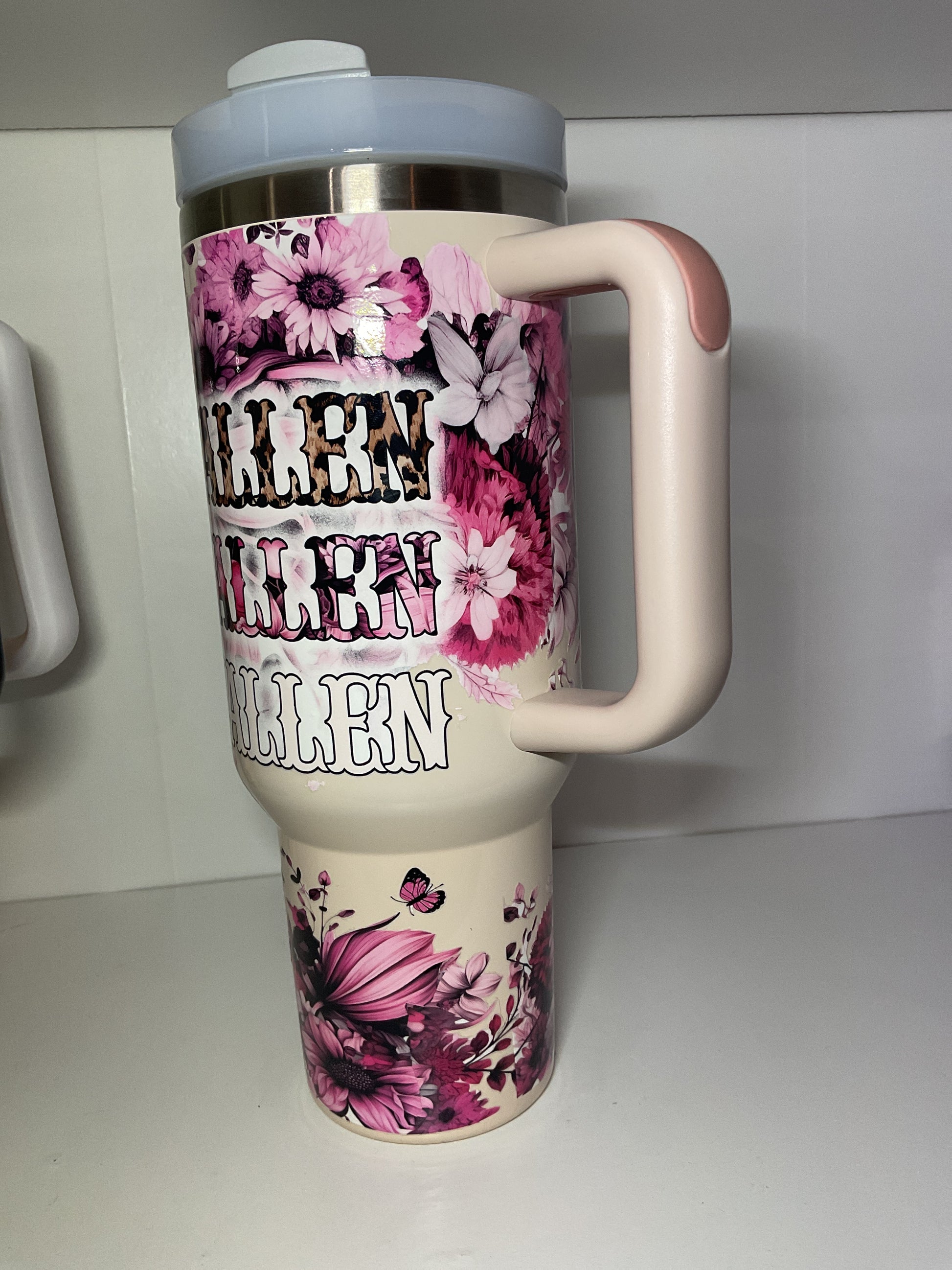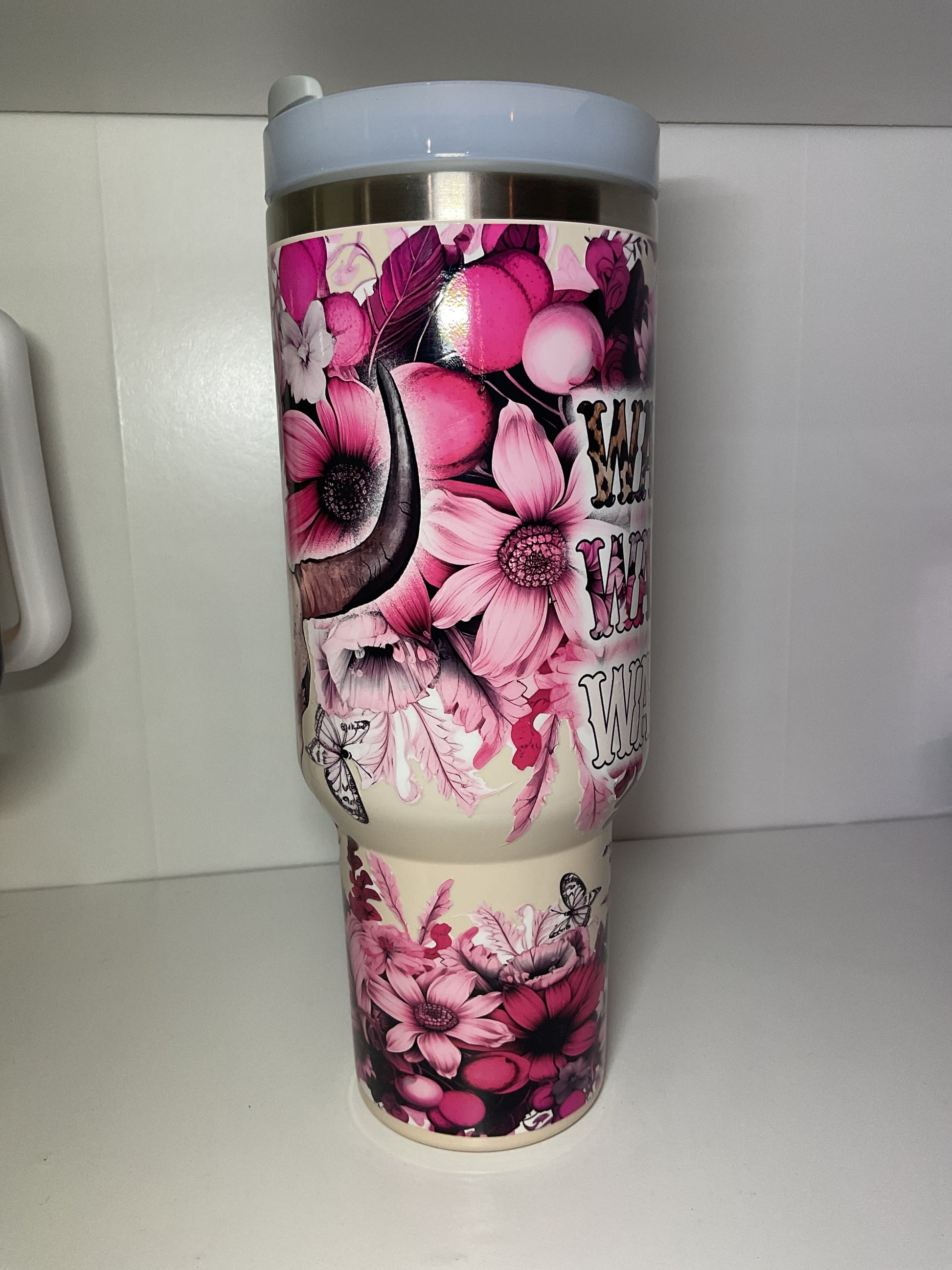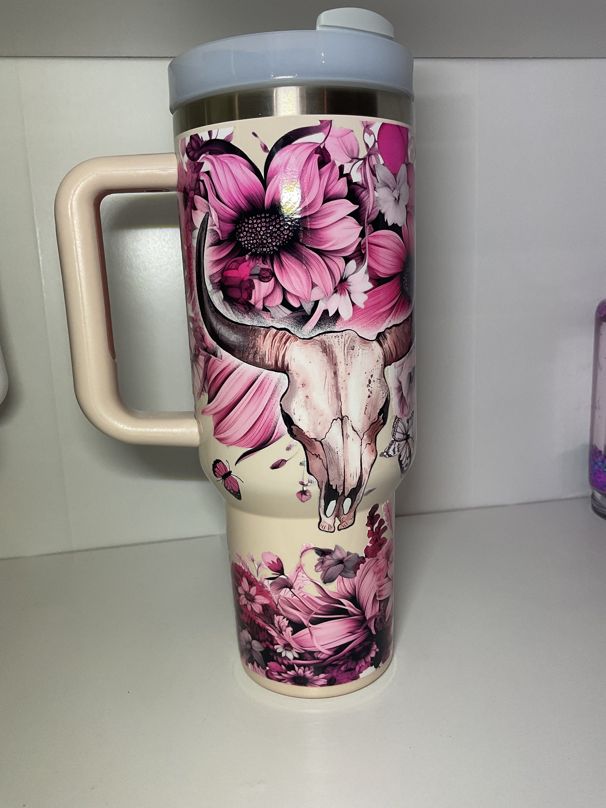 40oz Tumbler cup holder friendly comes with lid and straw.
